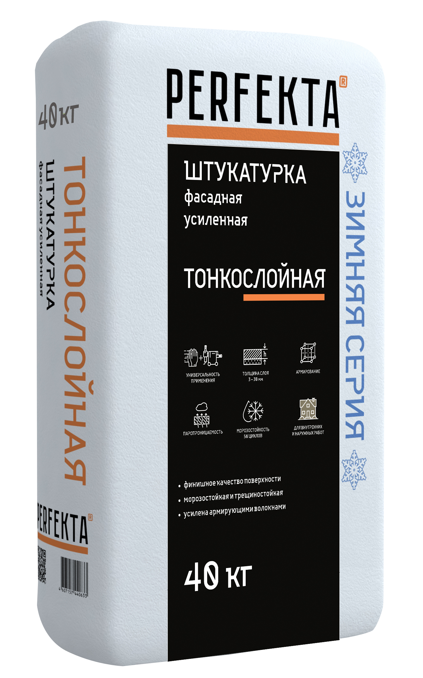 ШТУКАТУРКА ФАСАДНАЯ УСИЛЕННАЯ Perfekta® “ТОНКОСЛОЙНАЯ” ЗИМНЯЯ СЕРИЯпредназначена для выполнения при отрицательных температурах работ по тонкослойному выравниванию стен внутри и снаружи зданий. Может применяться для предварительного выравнивания потолков, для заделки трещин, выбоин и углублений. Используется под последующую отделку декоративными штукатурками, финишное шпаклевание, плиточную облицовку или окрашивание.