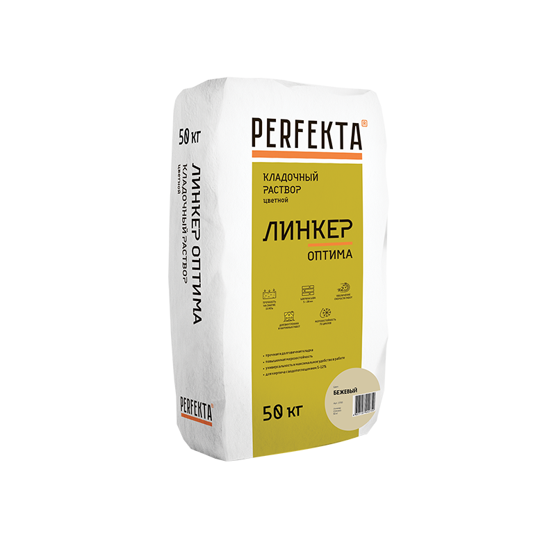 ЦВЕТНОЙ КЛАДОЧНЫЙ РАСТВОР Perfekta® "ЛИНКЕР ОПТИМА" предназначен для кладки облицовочного и рядового керамического кирпича с водопоглощением от 5 до 12 %.