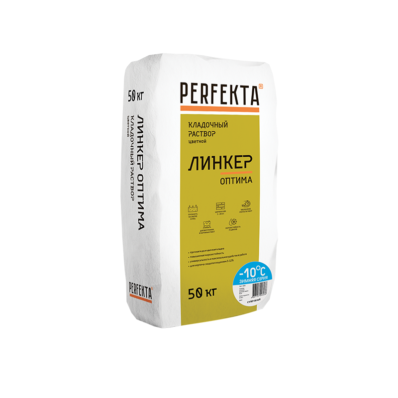 ЦВЕТНОЙ КЛАДОЧНЫЙ РАСТВОР Perfekta® "ЛИНКЕР ОПТИМА" обладает повышенной пластичностью и удобством в работе, легко наносится, разравнивается и надежно фиксирует каждый элемент в кладочном ряду, обеспечивая сокращение сроков выполнения работ. Повышает производительность кладочных работ, особенно рекомендуется для применения на крупных строительных объектах.
