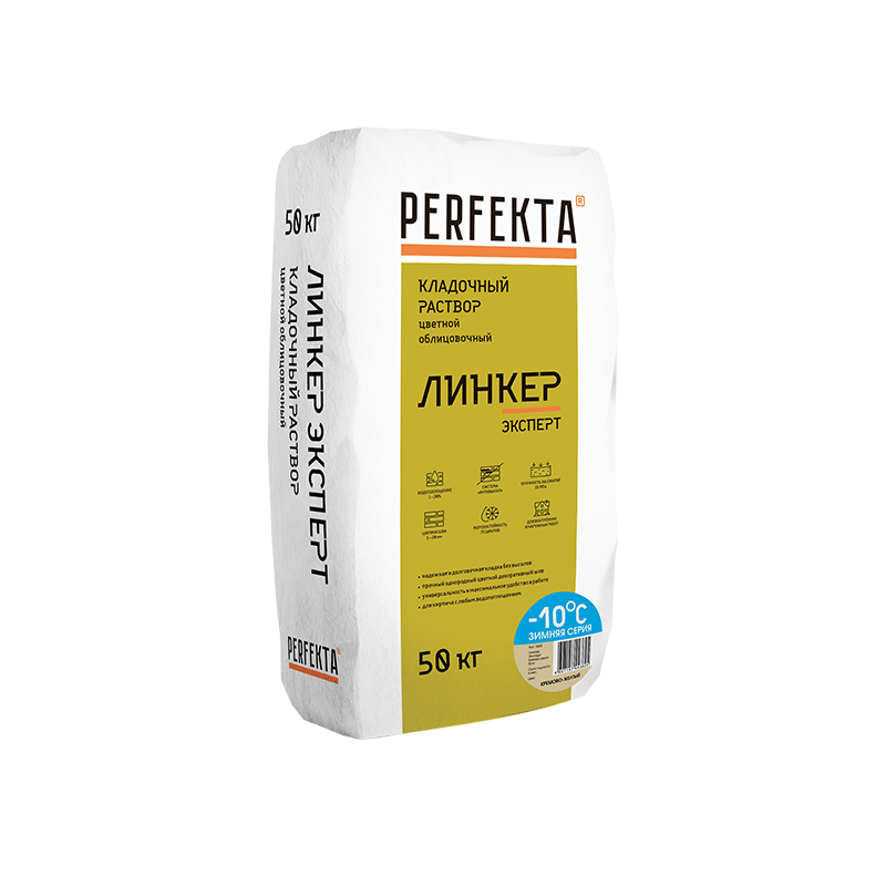 ЦВЕТНОЙ ОБЛИЦОВОЧНЫЙ КЛАДОЧНЫЙ РАСТВОР Perfekta® "ЛИНКЕР Эксперт" ЗИМНЯЯ СЕРИЯ предназначен для выполнения работ при отрицательных температурах по созданию прочного, долговечного, паропроницаемого, водо- и морозостойкого кладочного шва между элементами кладки с любым водопоглощением (полнотелый и пустотелый облицовочный керамический и клинкерный кирпич, рядовой керамический и силикатный кирпич, кирпичи или блоки из бетона и натурального камня) с одновременной декоративной расшивкой швов кладки.