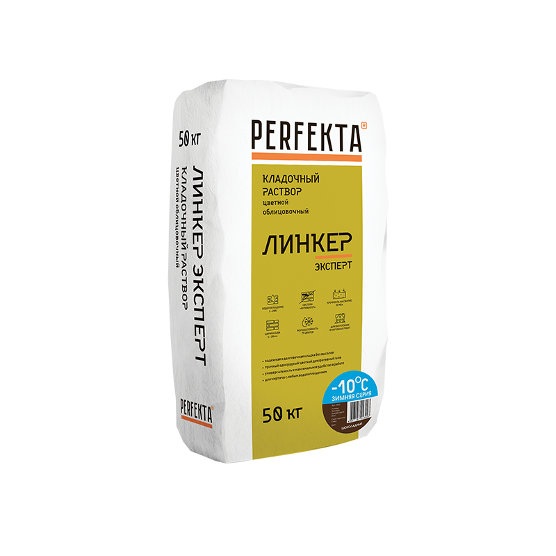 ЦВЕТНОЙ ОБЛИЦОВОЧНЫЙ КЛАДОЧНЫЙ РАСТВОР Perfekta® "ЛИНКЕР Эксперт" ЗИМНЯЯ СЕРИЯ предназначен для выполнения работ при отрицательных температурах по созданию прочного, долговечного, паропроницаемого, водо- и морозостойкого кладочного шва между элементами кладки с любым водопоглощением (полнотелый и пустотелый облицовочный керамический и клинкерный кирпич, рядовой керамический и силикатный кирпич, кирпичи или блоки из бетона и натурального камня) с одновременной декоративной расшивкой швов кладки.