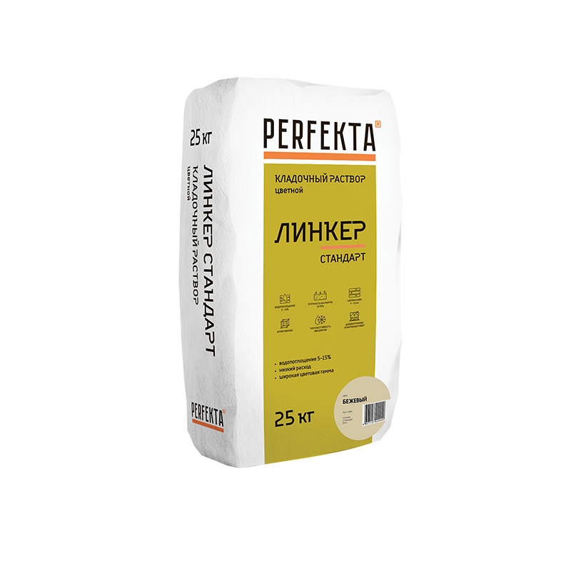 ЦВЕТНОЙ КЛАДОЧНЫЙ РАСТВОР Perfekta® "ЛИНКЕР Стандарт" предназначен для монтажа кладочных элементов с водопоглощением от 5 до 15 % (полнотелый и пустотелый облицовочный керамический кирпич, рядовой керамический и плотный силикатный кирпич, кирпичи или блоки из бетона и натурального камня).