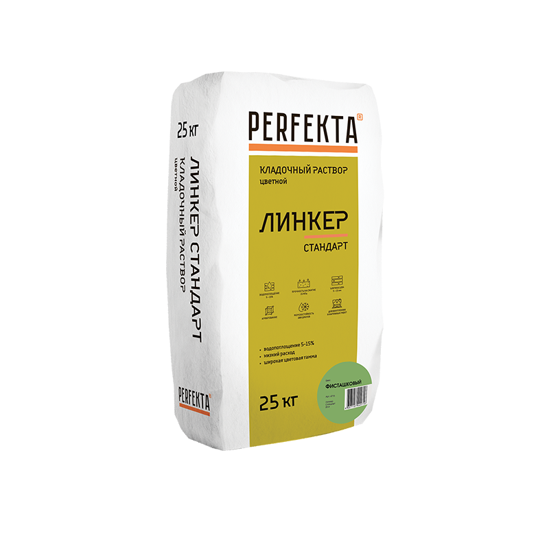 ЦВЕТНОЙ КЛАДОЧНЫЙ РАСТВОР Perfekta® "ЛИНКЕР Стандарт" предназначен для монтажа кладочных элементов с водопоглощением от 5 до 15 % (полнотелый и пустотелый облицовочный керамический кирпич, рядовой керамический и плотный силикатный кирпич, кирпичи или блоки из бетона и натурального камня).
