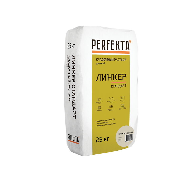 ЦВЕТНОЙ КЛАДОЧНЫЙ РАСТВОР Perfekta® "ЛИНКЕР Стандарт" предназначен для монтажа кладочных элементов с водопоглощением от 5 до 15 % (полнотелый и пустотелый облицовочный керамический кирпич, рядовой керамический и плотный силикатный кирпич, кирпичи или блоки из бетона и натурального камня).