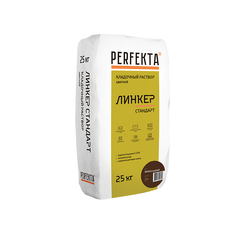 ЦВЕТНОЙ КЛАДОЧНЫЙ РАСТВОР Perfekta® "ЛИНКЕР Стандарт" предназначен для монтажа кладочных элементов с водопоглощением от 5 до 15 % (полнотелый и пустотелый облицовочный керамический кирпич, рядовой керамический и плотный силикатный кирпич, кирпичи или блоки из бетона и натурального камня).