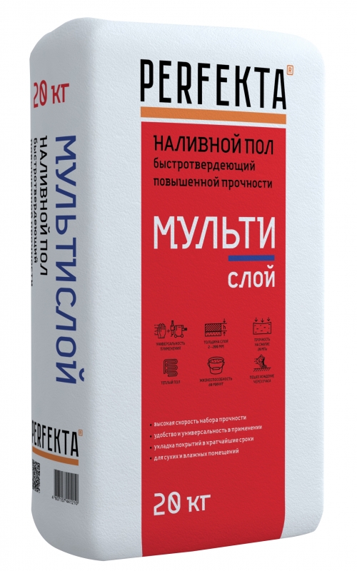 Быстротвердеющий наливной пол Perfekta® “МУЛЬТИСЛОЙ” изготовлен на основе минерального вяжущего, наполнителей и модифицирующих добавок.