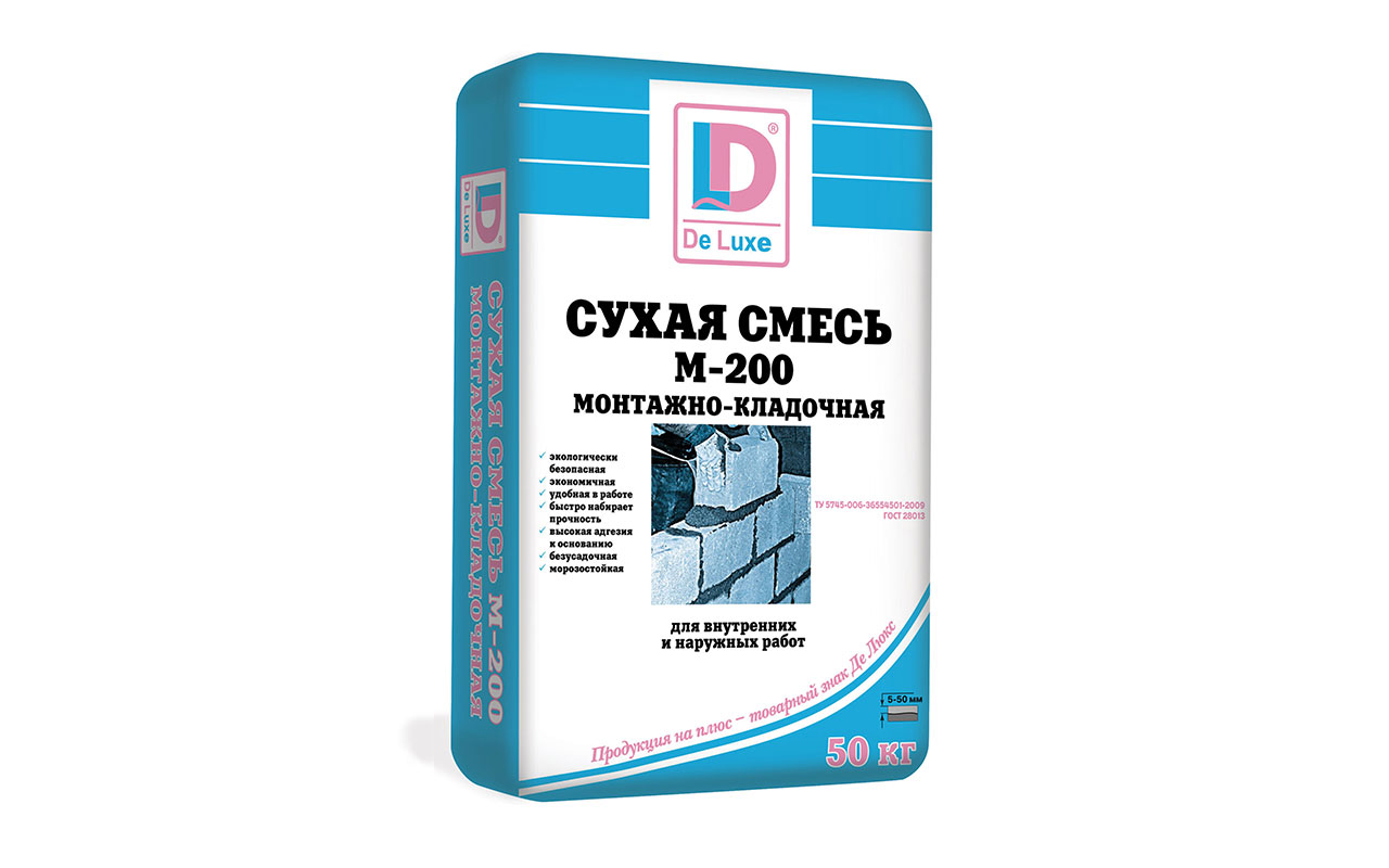 Основой монтажно-кладочной смеси М-200 является портландцемент с добавлением фракционного песка крупностью до 2,5 мм.