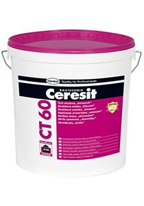 Штукатурка Ceresit CT 60 отличается повышенной влагостойкостью, сохраняет прочность в помещениях с повышенной влажностью. Хорошо подходит для устройства декоративных покрытий в районах с переменчивыми погодными условиями, а также в местах с повышенным движением (лестницы, коридоры). Можно использовать как внутри, так и снаружи зданий. В том числе используют в системах наружной теплоизоляции декоративного штукатурного фасада с пенополистиролом в качестве утеплителя.