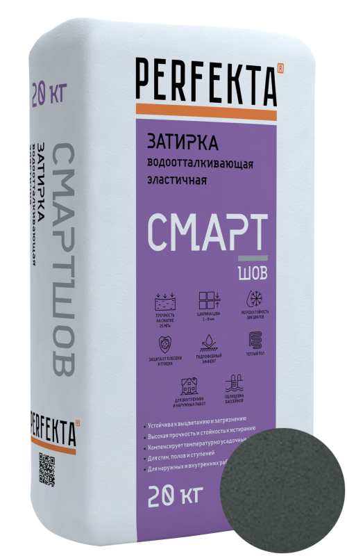 PERFEKTA "CмартШов", водоотталкивающая эластичная затирка(графит), мешок 20 кг