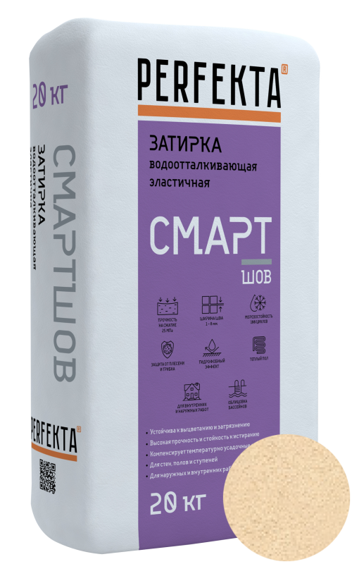 PERFEKTA "CмартШов", водоотталкивающая эластичная затирка(кремово-бежевый), мешок 20 кг