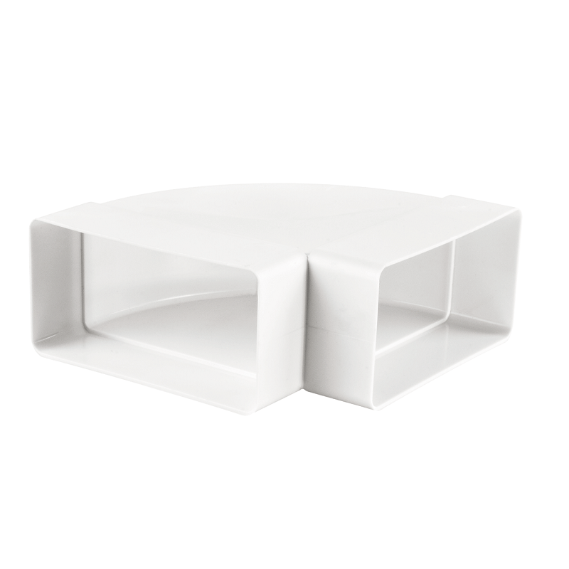 Используется в системах приточной или вытяжной вентиляции помещений в качестве соединительного элемента плоских каналов между собой под углом 90 градусов. Изготовлено из ударопрочного полистирола белого цвета.
