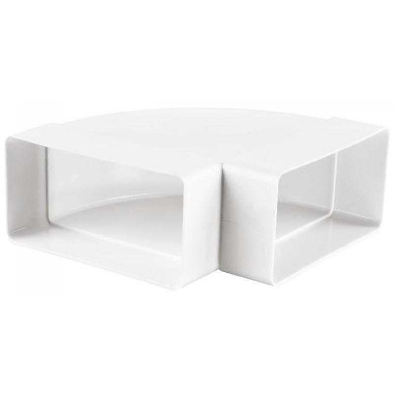Используется в системах приточной или вытяжной вентиляции помещений в качестве соединительного элемента плоских каналов между собой под углом 90 градусов. Изготовлено из ударопрочного полистирола белого цвета.