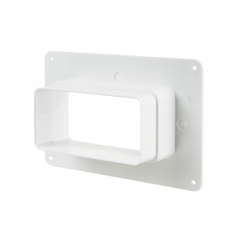 Для подсоединения каналов к вентиляционным отверстиям (шахтам). Декорирование монтажных отверстий. Изготавливается из пластика белого цвета. Крепится к стене при помощи шурупов.